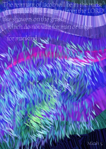 The remnant of Jacob will be in the midst of many peoples like dew from the LORD, like showers on the grass, which do not wait for man or linger for mankind.